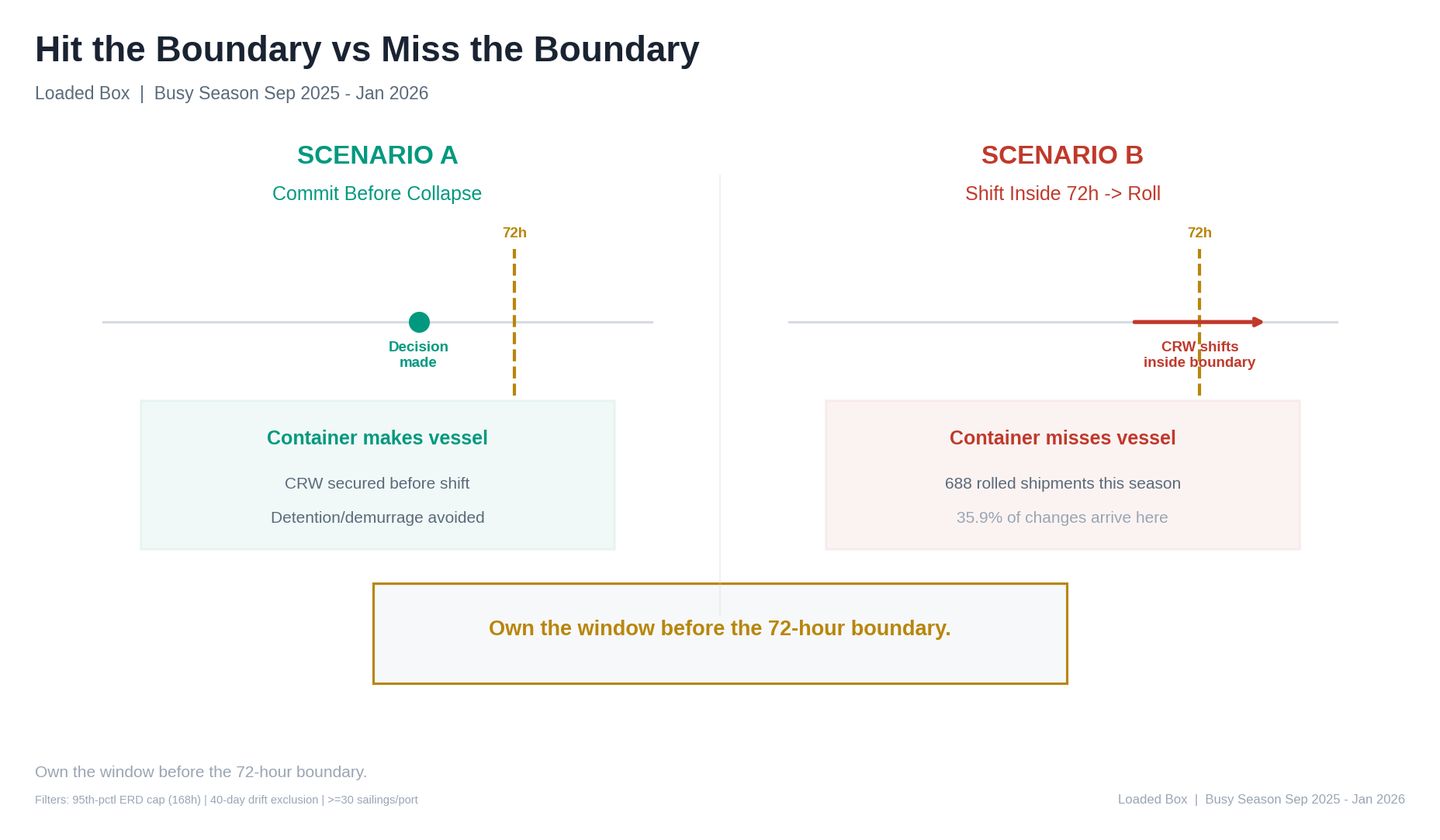 Caption: The 72-hour boundary separates manageable drift from operational disruption.