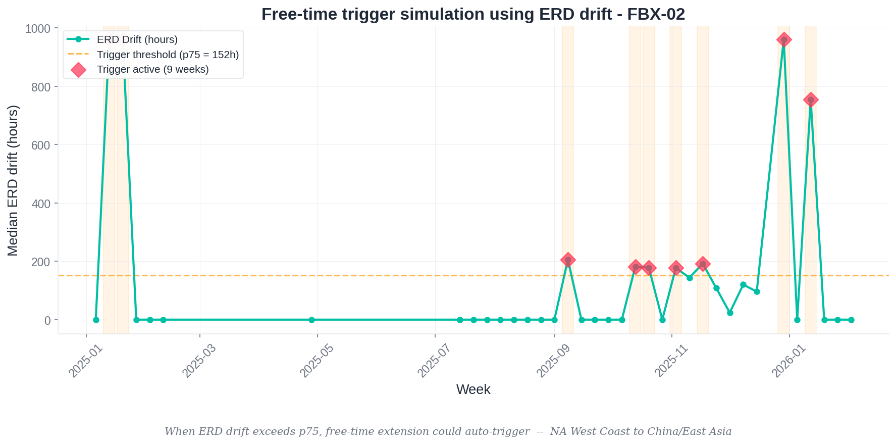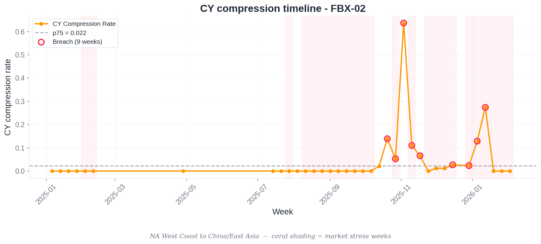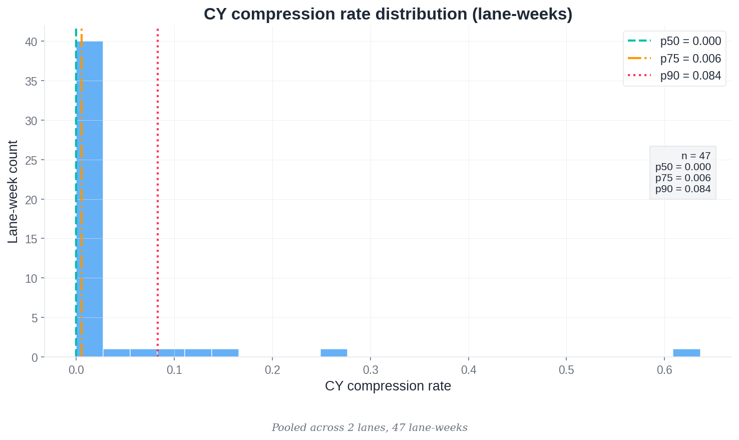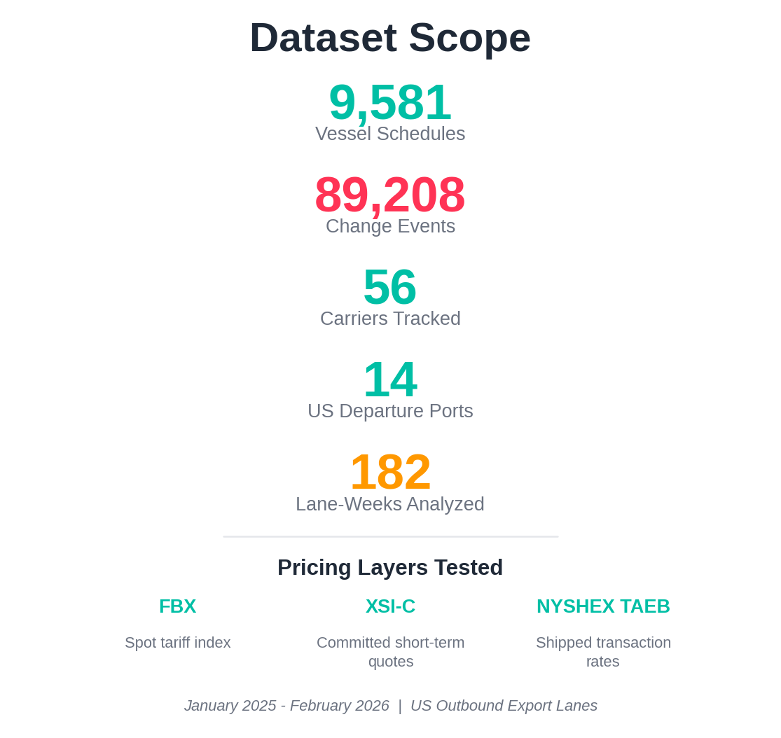 - 182 joined lane-weeks across three major export lanes