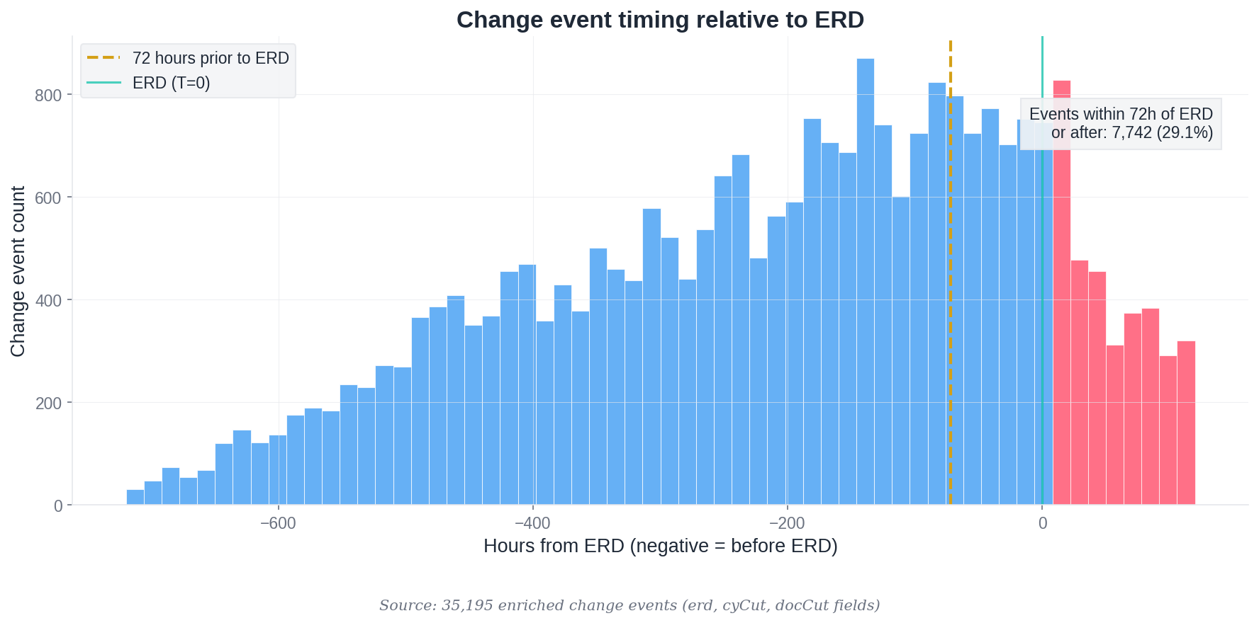 - 7,742 events (29.1 percent) occurred within 72 hours of ERD or after.