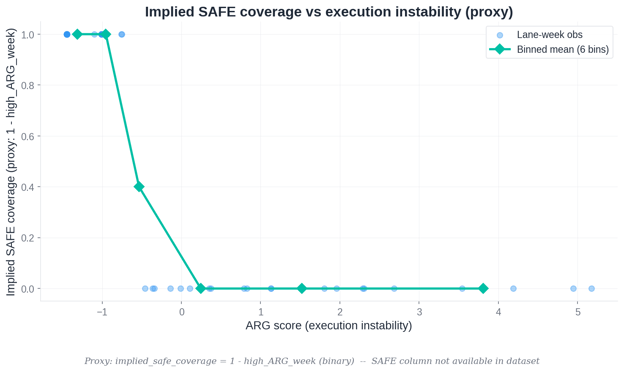 We use a conservative proxy (implied_safe_coverage = 1 - high_ARG_week) for illustration.