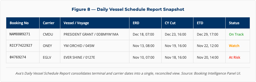 Figure 8 - Daily Vessel Schedule Report Snapshot