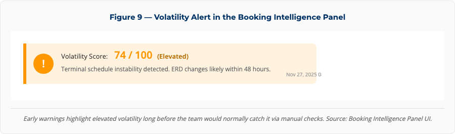 Figure 9 - Alert Card: “Volatility Score: 74/100 (Elevated)”