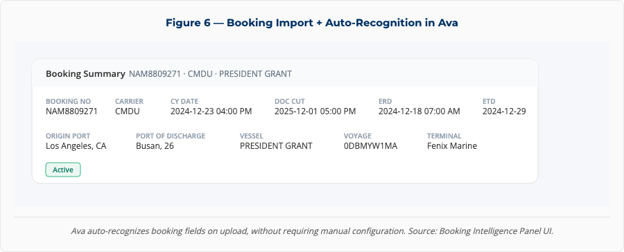 You upload a CSV, CC Ava’s inbox, or connect your TMS - and Ava immediately recognizes every booking.