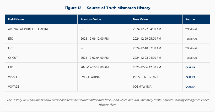 In the first 30 days, Ava surfaced ERD/CY drift and cutoff-impacting changes 1-2 days earlier than the team typically detects through manual checks.