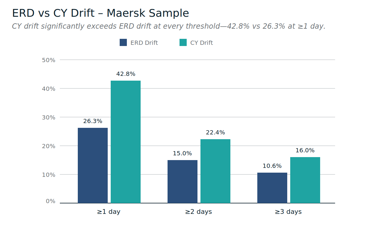 Across the Maersk sample, CY Cutoff drift materially exceeds ERD drift.