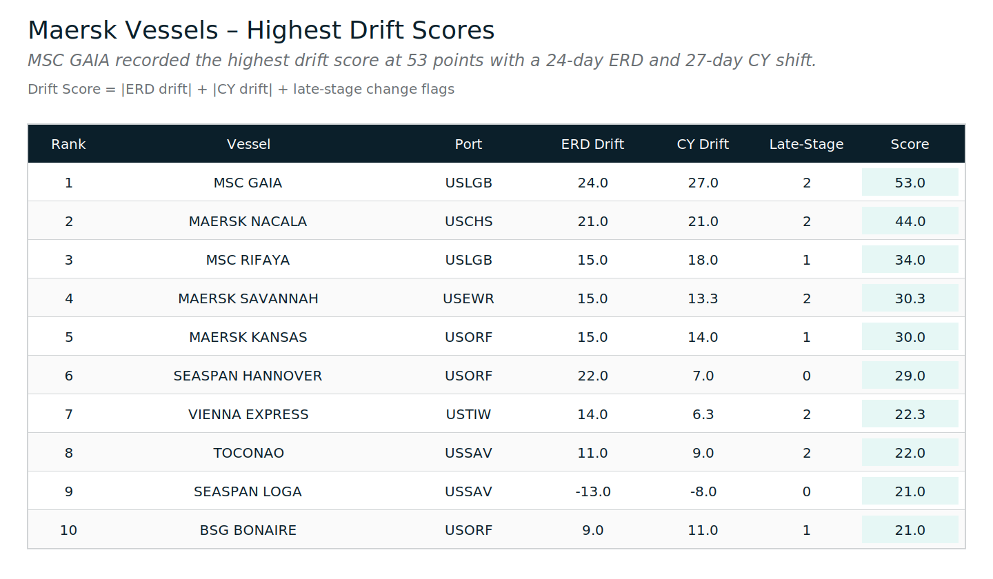 - 3+ day ERD drift: 10.63% of port-calls