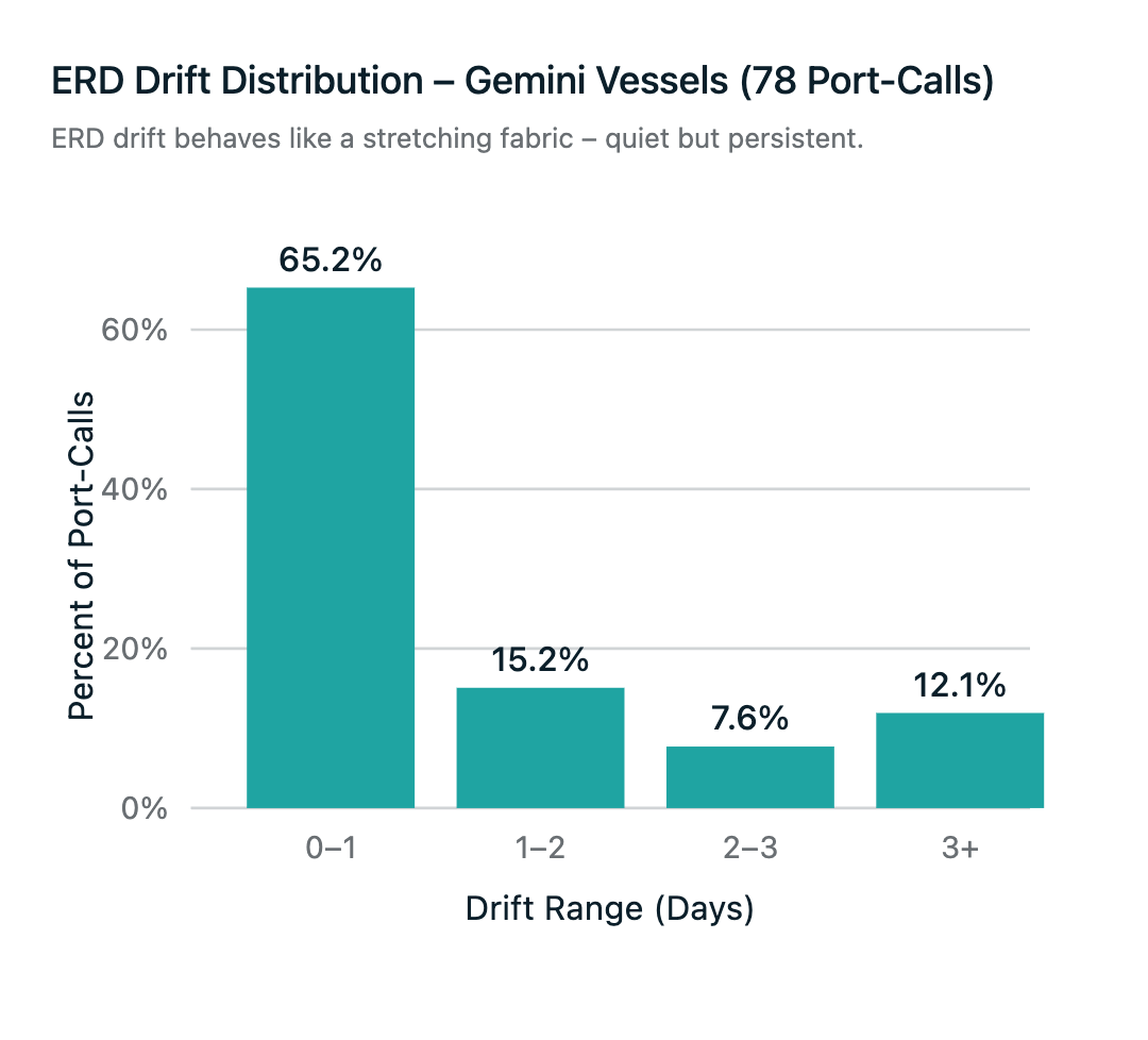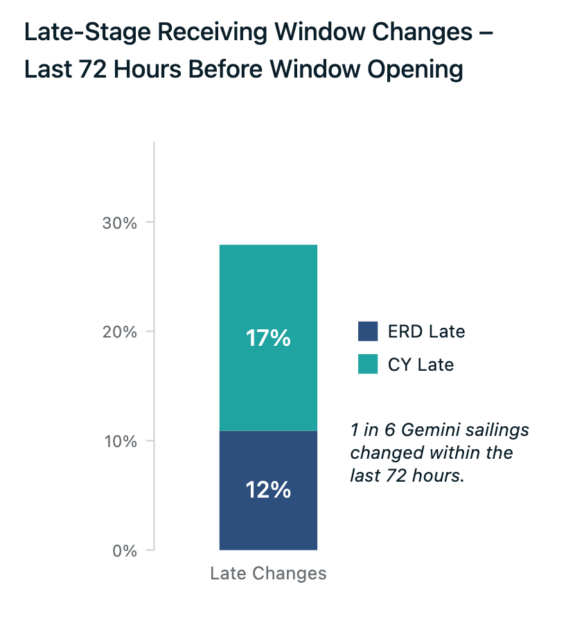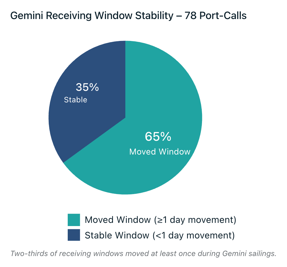 Only 35 percent of port-calls maintained a stable ERD and CY Cut (both moved less than 1 day). That means 65 percent of Gemini receiving windows moved at least once.