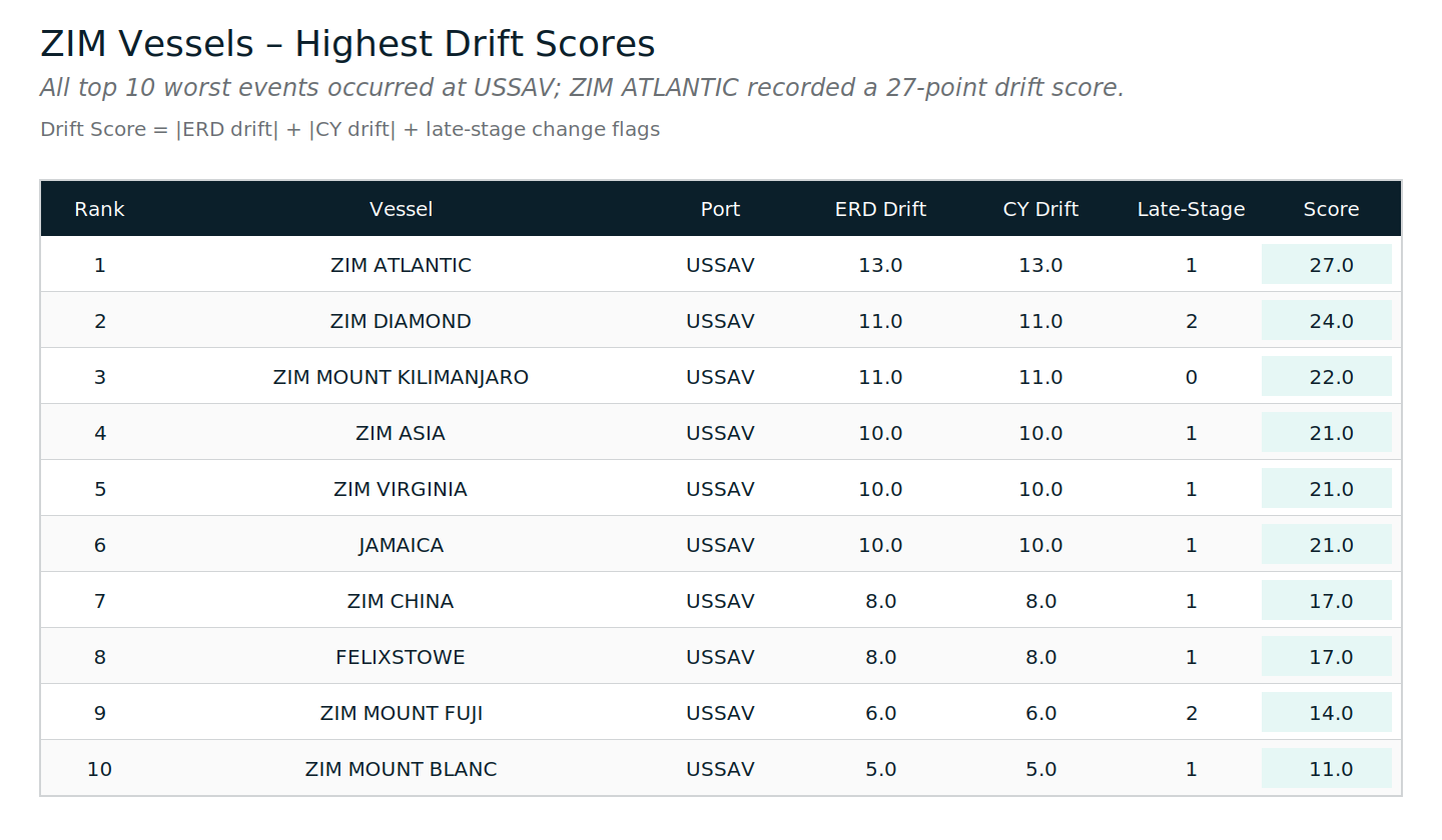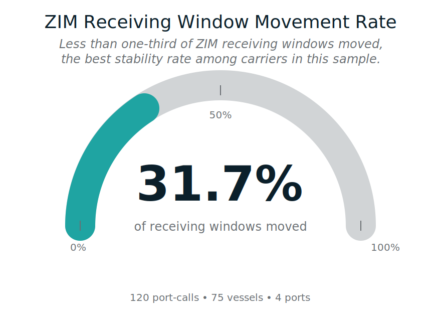In this sample, ZIM receiving windows are stable in a clear majority of port-calls. But nearly one in three still move, which is enough to create recurring execution breaks - especially when changes land late.
